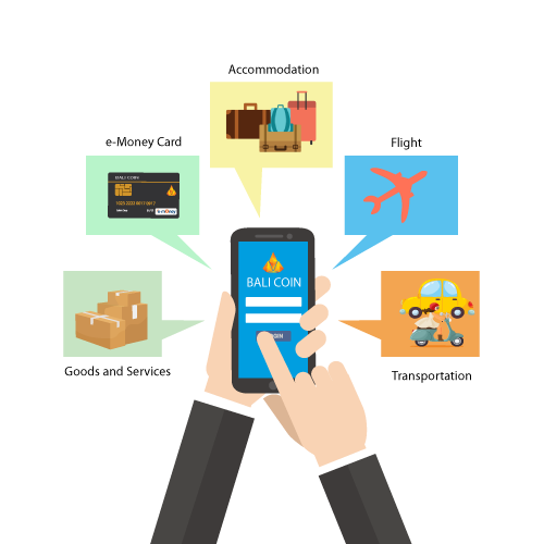 - Reservations: BALI Coin can be used to order flight tickets, book hotels, hire car or other accommodations with special discount.