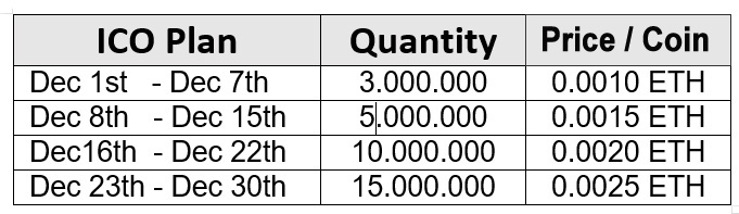 Pre-ICO (Nov 15th – Nov 30th, 2017 )