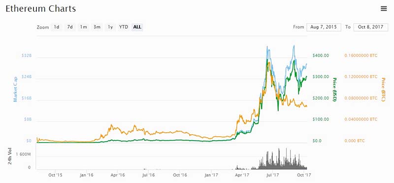 Ethereum Price Trend From Oct 2015 – Oct 2017 ( from coinmarketcap.com )